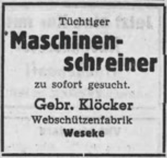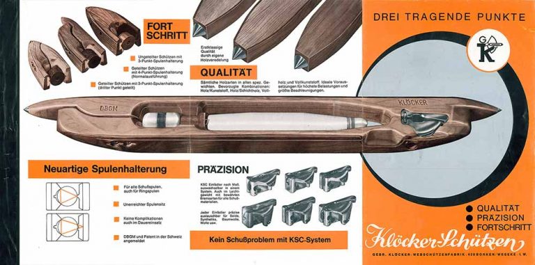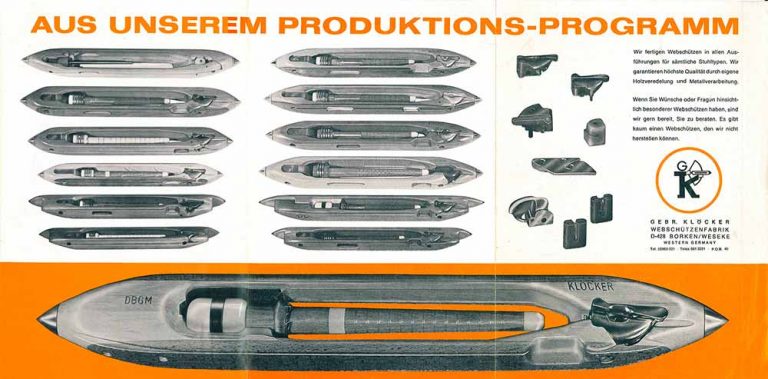 Im Laufe der Zeit spezialisierte sich Klöcker zunehmend auf die Produktion von Webschützen – auch Webschiffchen“ genannt und etablierten sich als einer der weltweit führenden Anbieter für automatische Webschützen.