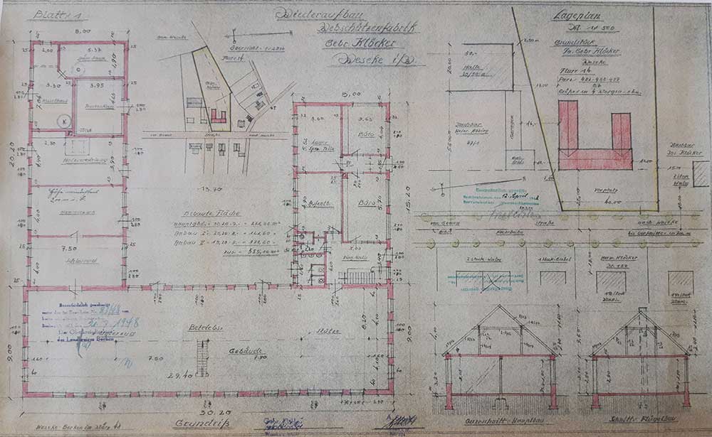 Trotz der schwierigen Umstände gelang es den damaligen Inhabern Heinz und Franz Klöcker, das Unternehmen mit enormem persönlichen Einsatz wieder aufzubauen.