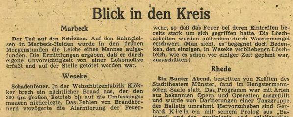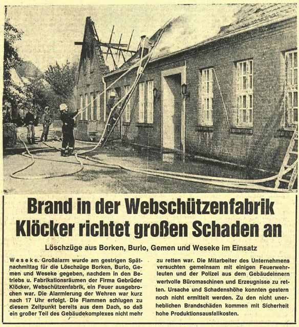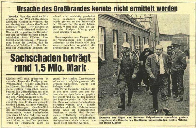 1974 zerstörte ein weiterer Brand die Firma Klöcker an ihrem neuen Standort in der Hauptstraße.