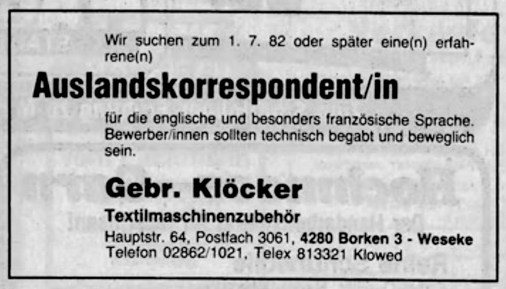 Ende der 70er-Jahre erlebte die Textilindustrie im Münsterland einen dramatischen Wandel. Billigproduktionen begannen, der heimischen Wirtschaft Konkurrenz zu machen, und neue, automatisierte Webmaschinen drängten auf den Markt.