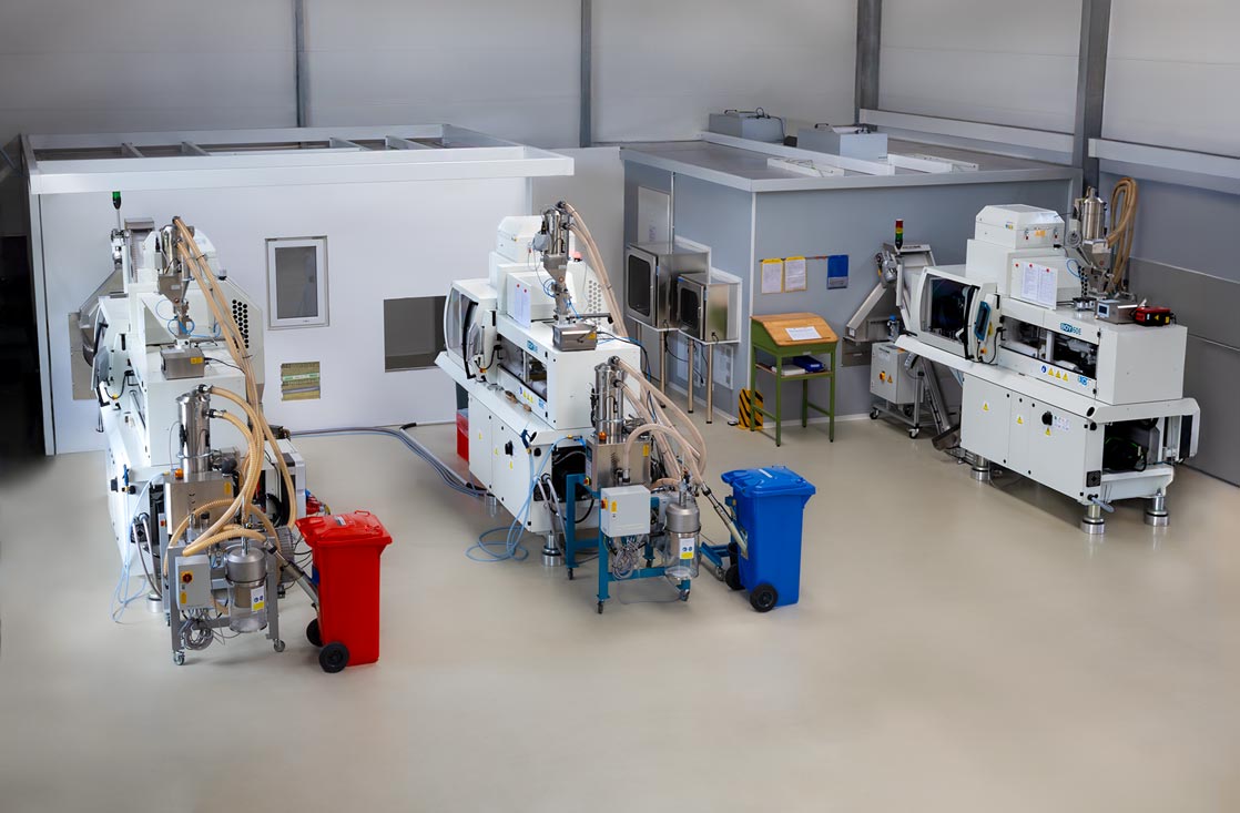 Im jüngsten Bereich, der Dentalmedizin, entstehen innovative Kunststoffprodukte mittels moderner Spritzgießtechnik. Die Fertigung und Verpackung erfolgt in unseren Hallen in speziell erbauten