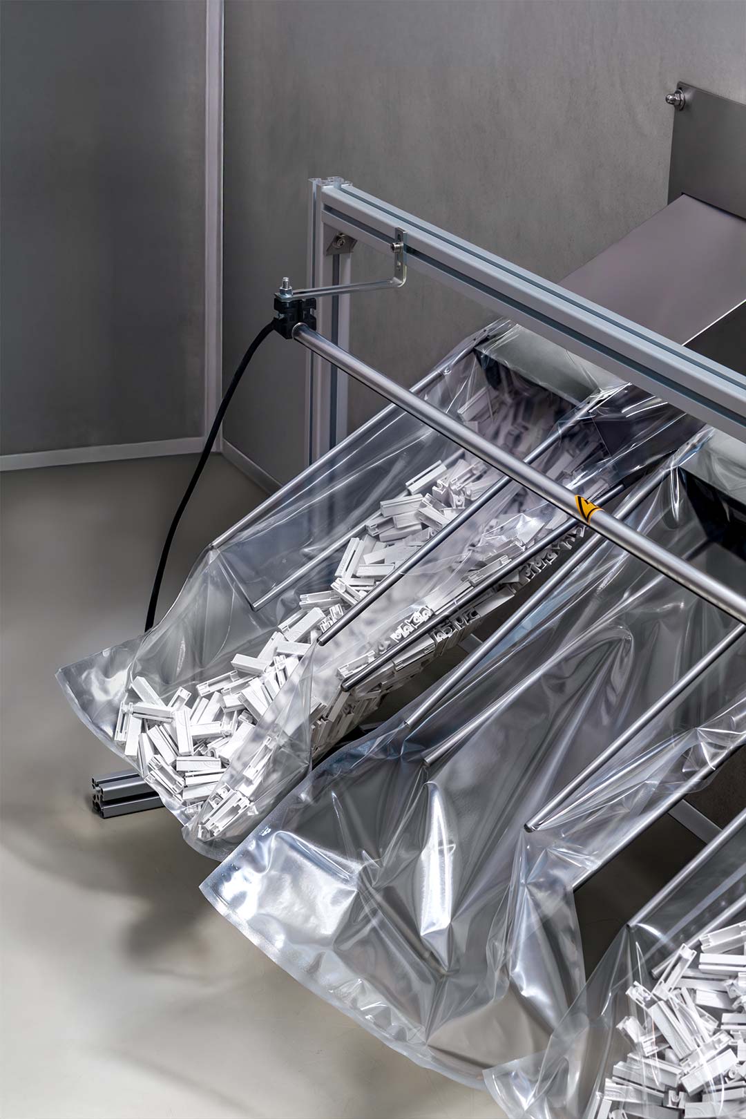 AMG hat bei Klöcker zwei Reinräume erbaut und eingerichtet, die eine nahtlose Verbindung mit unseren validierten Maschinen herstellen. Die Fertigung der Produkte erfolgt unmittelbar und ohne externe Einflüsse durch die Maschine in die Reinraumumgebung. Zudem gewährleisten unsere, durch AMG geschulten, Fachkräfte eine luftdichte und hygienische Verpackung.