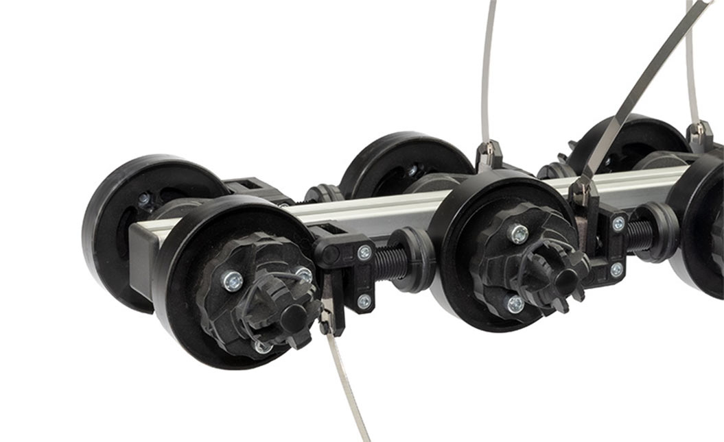 Die verschiedenen Befestigungsadapter von Klöcker lassen sich flexibel mit unseren Fadenniederhalter kombinieren, unteranderem auch in Verbindung mit unseren K-MAG® Minidreherlitzen. So entstehen anpassungsfähige Lösungen, die sich optimal in unterschiedliche Gewebeprozesse