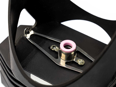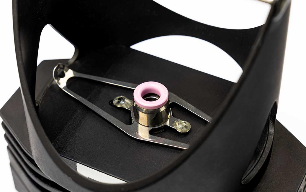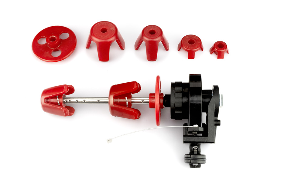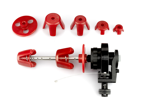 Eine hochwertige Dreherspulenlagerung ist notwendig, damit der Dreherfaden mit geringer Spannung und ruckfrei abgezogen werden kann. Klöcker bietet hier alle notwendigen Zubehörteile zur Bildung einer Funktionseinheit an, die aus Dreherspulenlagerungen, Fadenumlenkungen etc. besteht.