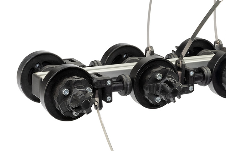 Die Klöcker Dreherspulenlagerung komplettiert das K-MAG® Dreherlitzenprogramm, die K-MAG® Kreuzdreherfamilie, den K-GLASS® Kantenapparat sowie den Propellerdreher® zu einer präzisen Funktionseinheit, die eine dauerhafte und einwandfreie Funktion der Klöcker Kantendreher insbesondere bei Hochleistungswebmaschinen garantiert.